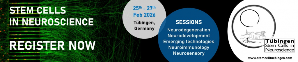 Registration for the third ‘Stem Cells in Neuroscience’ meeting in Tübingen, Germany, from 25th-27th of February 2026 is now OPEN. The aim of the meeting is to stimulate and expand the interdisciplinary and (inter)national networking of researchers in the neuroscience and stem cell field. Elly Hol (Utrecht, The Netherlands), Martin Kampmann (San Francisco, USA), Jürgen Knoblich (Vienna, Austria), Botond Roska(Basel, Switzerland), Julia TCW (Boston, USA), and Anna Williams (Edinburgh, United Kingdom) will deliver keynote lectures spanning topics from neurodevelopment to neurodegeneration, neurosensory, neuroglia and emerging technologies.